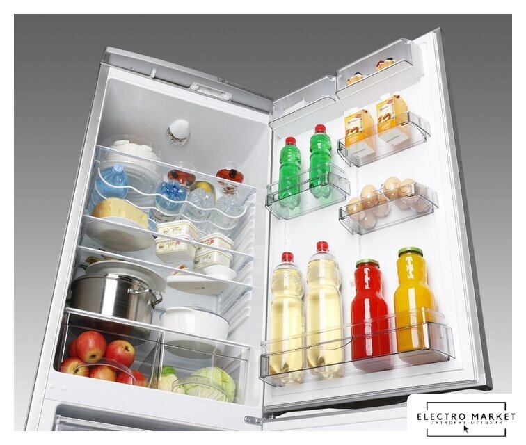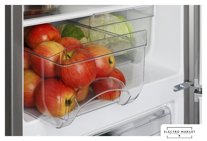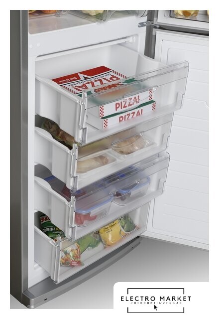 отдельностоящий, полный No Frost, электронное управление, класс A, полезный объём: 292 л (181 + 111 л), перенавешиваемые двери, лоток для яиц, 59.5x62.5x196.5 см, серебристый