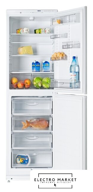 отдельностоящий, без No Frost, электронное управление, класс A+, полезный объём: 370 л (251 + 119 л), зона свежести, перенавешиваемые двери, выдвижной/подвесной контейнер, лоток для яиц, 59.5x62.7x206.8 см, белый