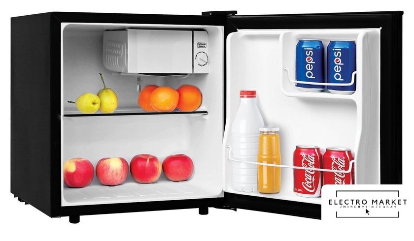 отдельностоящий, без No Frost, механическое управление, класс A+, полезный объём: 43 л, перенавешиваемые двери, лоток для яиц, 47.2x45x49.2 см, черный/серебристый