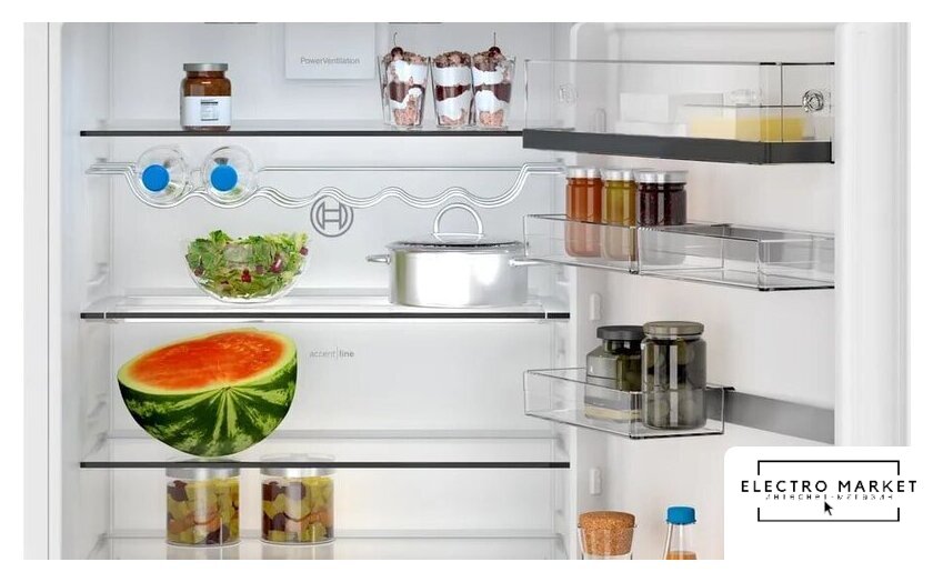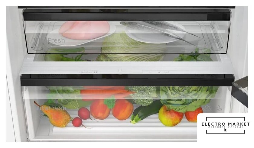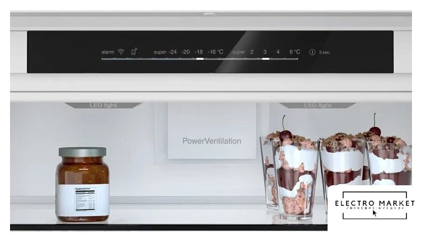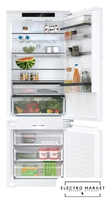 встраиваемый, No Frost (морозильная камера), сенсорное управление, полезный объём: 260 л (184 + 76 л), зона свежести, перенавешиваемые двери, полка для вина, лоток для яиц, 54.1x54.8x177.2 см, белый