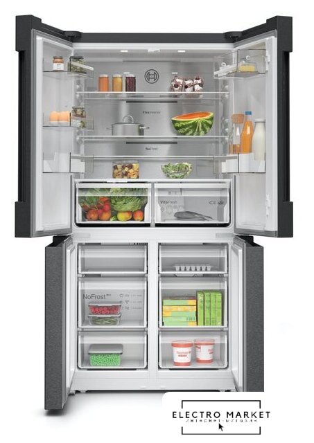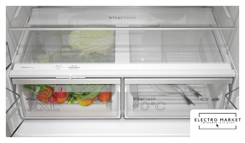 отдельностоящий, No Frost (морозильная камера), электронное управление, класс A+, полезный объём: 568 л (372 + 196 л), инверторный компрессор, зона свежести, лоток для яиц, отделка: стекло, 90x72x184 см, белый