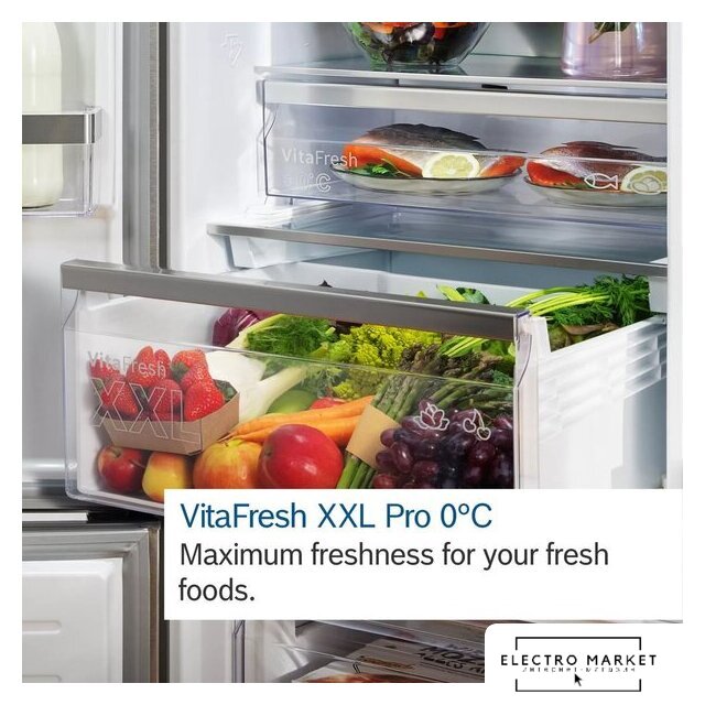 отдельностоящий, полный No Frost, сенсорное управление, полезный объём: 387 л (277 + 110 л), инверторный компрессор, зона свежести, перенавешиваемые двери, нулевой зазор, полка для вина, 59.5x67.5x203 см, серебристый/нержавеющая сталь