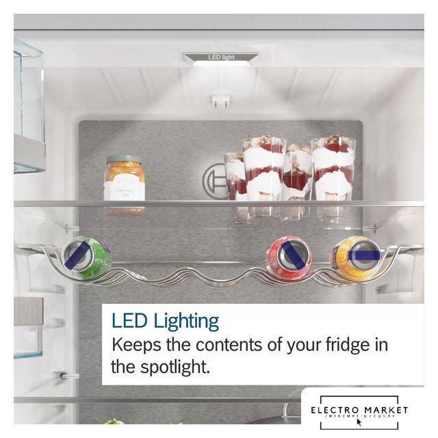 отдельностоящий, без No Frost, сенсорное управление, класс A++, полезный объём: 398 л, инверторный компрессор, перенавешиваемые двери, складная полка, полка для вина, лоток для яиц, 60.9x67.5x185.5 см, золотистый