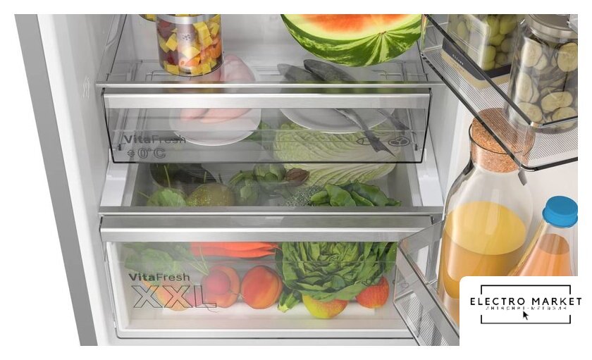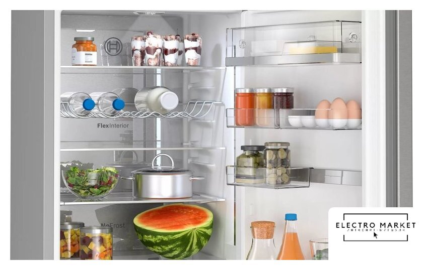 отдельностоящий, полный No Frost, электронное управление, класс A++, полезный объём: 512 л (364 + 148 л), инверторный компрессор, зона свежести, подставка-лоток для бутылок, лоток для яиц, отделка: стекло, 90.9x69x190.5 см, нержавеющая сталь
