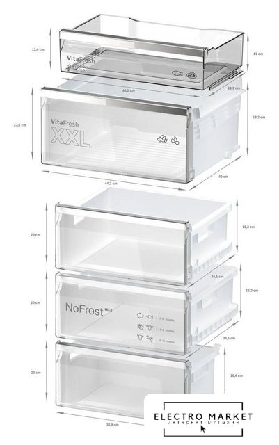 отдельностоящий, No Frost (морозильная камера), сенсорное управление, класс A+++, полезный объём: 310 л (216 + 94 л), инверторный компрессор, перенавешиваемые двери, автодоводчик дверей, складная полка, лоток для яиц, отделка: защита от отпечатков, 59.7x67.5x185.5 см, белый