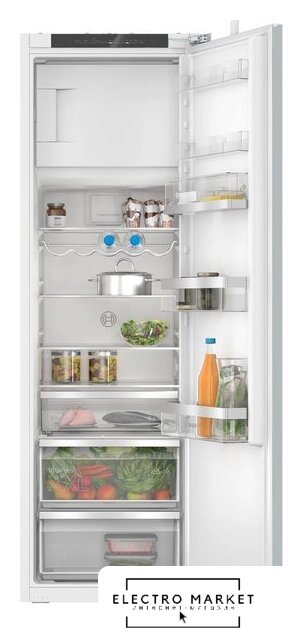 встраиваемый, полный No Frost, электронное управление, класс A++, полезный объём: 284 л (215 + 69 л), инверторный компрессор, зона свежести, перенавешиваемые двери, полка для вина, лоток для яиц, 54x54.5x193.5 см, белый