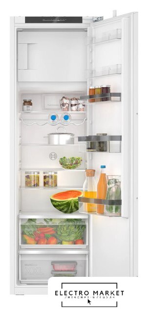 встраиваемый, без No Frost, сенсорное управление, класс A++, полезный объём: 320 л, перенавешиваемые двери, складная полка, выдвижной/подвесной контейнер, подставка-лоток для бутылок, лоток для яиц, 55.9x54.6x177 см, белый