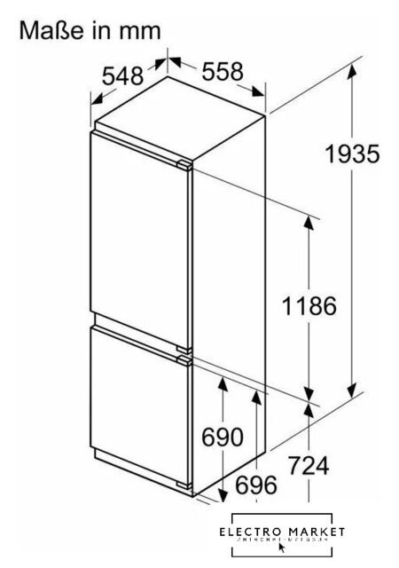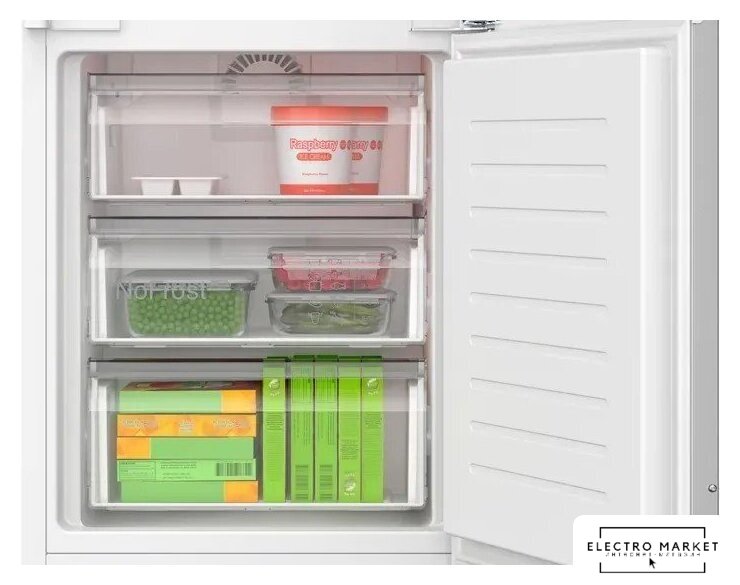 встраиваемый, No Frost (морозильная камера), электронное управление, полезный объём: 248 л (186 + 62 л), зона свежести, перенавешиваемые двери, лоток для яиц, 54.6x54.9x177.2 см