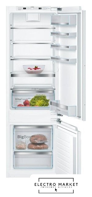 встраиваемый, плоские шарниры, без No Frost, электронное управление, класс A++, полезный объём: 289 л, зона свежести, перенавешиваемые двери, выдвижная полка, лоток для яиц, 55.8x54.5x177.2 см, белый