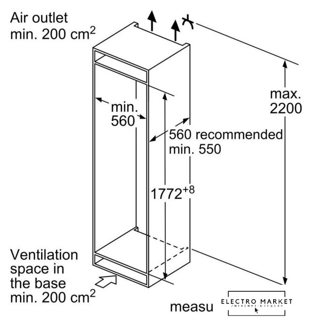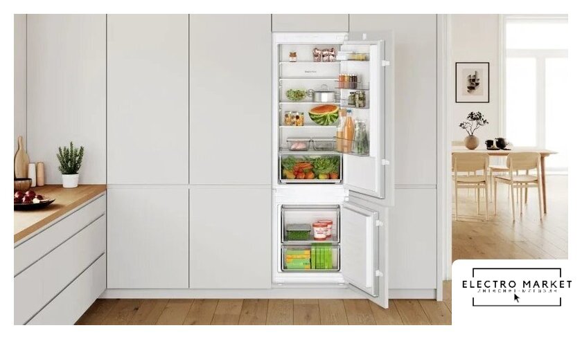 встраиваемый, No Frost (морозильная камера), электронное управление, класс A+, полезный объём: 197 л, 54x54.5x177 см