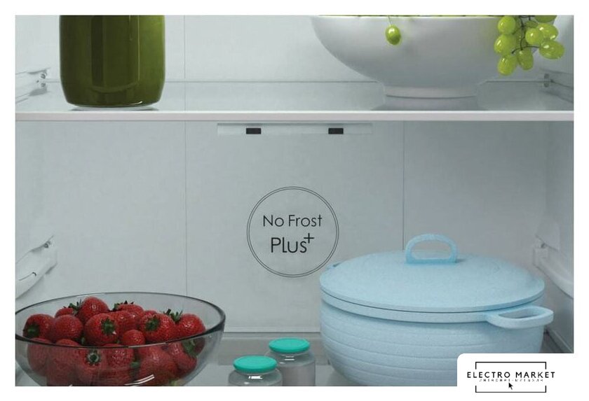 отдельностоящий, полный No Frost, сенсорное управление, полезный объём: 298 л (207 + 91 л), перенавешиваемые двери, нулевой зазор, лоток для яиц, 59.5x59x185 см, белый