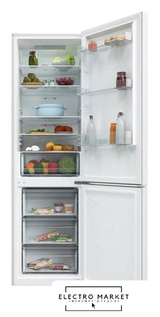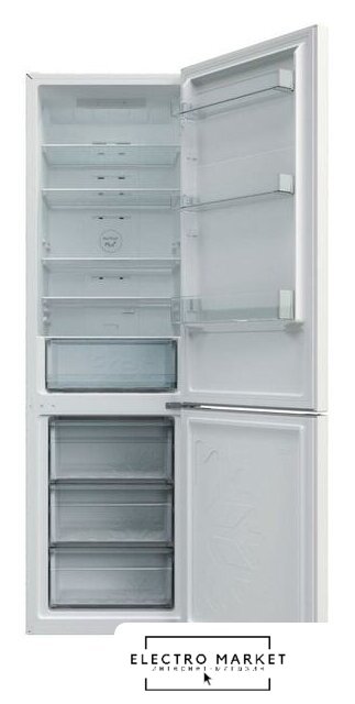 отдельностоящий, полный No Frost, электронное управление, класс A, полезный объём: 292 л (181 + 111 л), перенавешиваемые двери, лоток для яиц, 59.5x62.5x196.5 см, белый