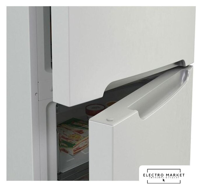 отдельностоящий, без No Frost, электронное управление, класс A+, полезный объём: 301 л (182 + 119 л), перенавешиваемые двери, лоток для яиц, 59.5x62.7x176.8 см, белый