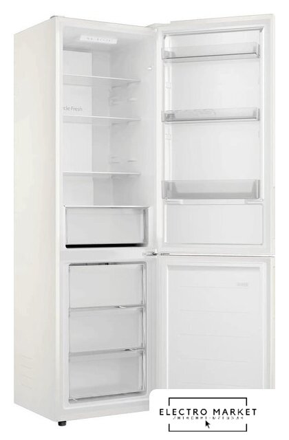 отдельностоящий, без No Frost, механическое управление, класс A+, полезный объём: 375 л (275 + 100 л), зона свежести, перенавешиваемые двери, лоток для яиц, 69.5x62.5x195.5 см, белый
