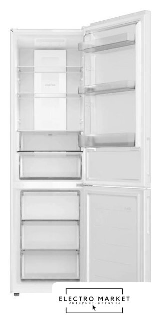 отдельностоящий, без No Frost, электронное управление, класс A+, полезный объём: 370 л (251 + 119 л), зона свежести, перенавешиваемые двери, выдвижной/подвесной контейнер, лоток для яиц, 59.5x62.7x206.8 см, белый