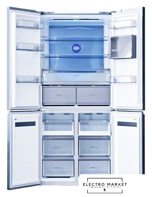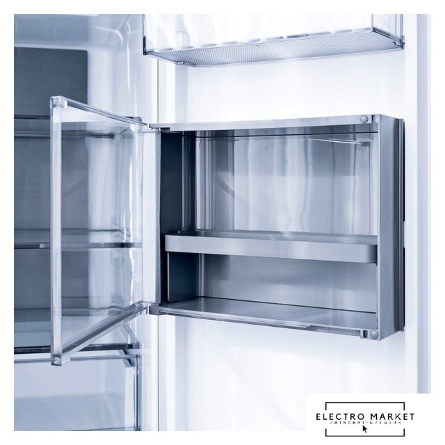 отдельностоящий, полный No Frost, электронное управление, класс A++, инверторный компрессор, зона свежести, лоток для яиц, 91x69.5x182.5 см, серебристый