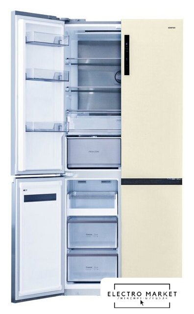 отдельностоящий, полный No Frost, электронное управление, класс A+, полезный объём: 558 л (368 + 190 л), инверторный компрессор, зона свежести, лоток для яиц, 91x75x179 см, серый