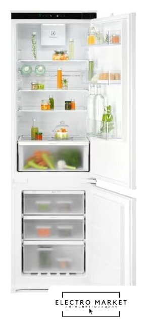 встраиваемый, скользящие направляющие, No Frost (морозильная камера), сенсорное управление, класс A+, полезный объём: 251 л (181 + 70 л), перенавешиваемые двери, лоток для яиц, 54.1x54.5x177 см, белый
