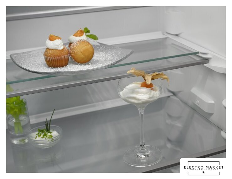 встраиваемый, без No Frost, электронное управление, зона свежести, перенавешиваемые двери, складная полка, лоток для яиц, 55.9x54.6x177 см, белый