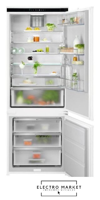 встраиваемый, полный No Frost, электронное управление, класс A++, полезный объём: 284 л (215 + 69 л), инверторный компрессор, зона свежести, перенавешиваемые двери, полка для вина, лоток для яиц, 54x54.5x193.5 см, белый