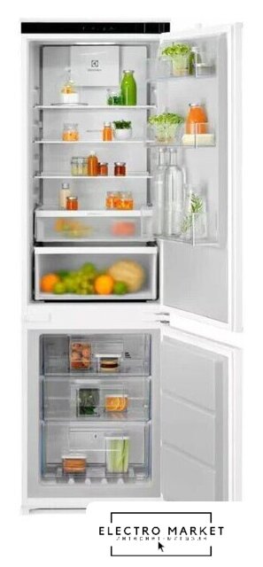 встраиваемый, скользящие направляющие, No Frost (морозильная камера), сенсорное управление, класс A+, полезный объём: 251 л (181 + 70 л), перенавешиваемые двери, лоток для яиц, 54.1x54.5x177 см, белый