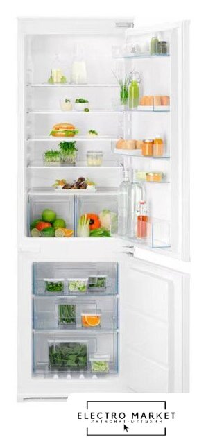 встраиваемый, без No Frost, электронное управление, класс A+, полезный объём: 272 л (195 + 72 л), перенавешиваемые двери, лоток для яиц, 54x54.9x177.9 см, белый