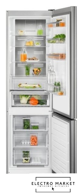 отдельностоящий, No Frost (морозильная камера), сенсорное управление, класс A+++, полезный объём: 319 л (225 + 94 л), инверторный компрессор, перенавешиваемые двери, складная полка, полка для вина, выдвижной/подвесной контейнер, подставка-лоток для бутылок, лоток для яиц, отделка: защита от отпечатков, 59.7x67.5x185.5 см, нержавеющая сталь