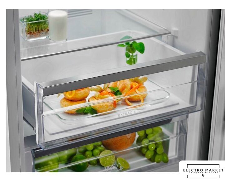 отдельностоящий, полный No Frost, электронное управление, класс A++, полезный объём: 435 л (330 + 105 л), зона свежести, перенавешиваемые двери, выдвижная полка, подставка-лоток для бутылок, лоток для яиц, 70x67x203 см, нержавеющая сталь