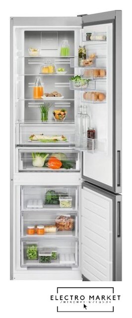 отдельностоящий, No Frost (морозильная камера), сенсорное управление, класс A+++, полезный объём: 360 л (266 + 94 л), инверторный компрессор, перенавешиваемые двери, складная полка, полка для вина, лоток для яиц, отделка: защита от отпечатков, 59.7x67.5x201.5 см, темная сталь