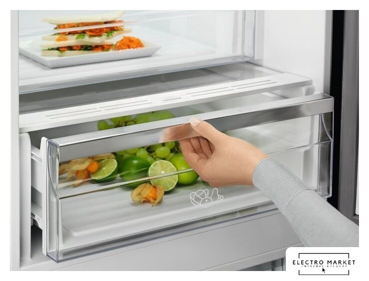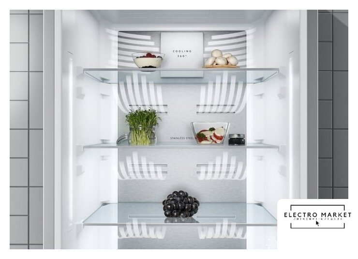 отдельностоящий, полный No Frost, электронное управление, полезный объём: 330 л (230 + 101 л), зона свежести, перенавешиваемые двери, лоток для яиц, отделка: защита от отпечатков, 59.5x65x186 см, нержавеющая сталь