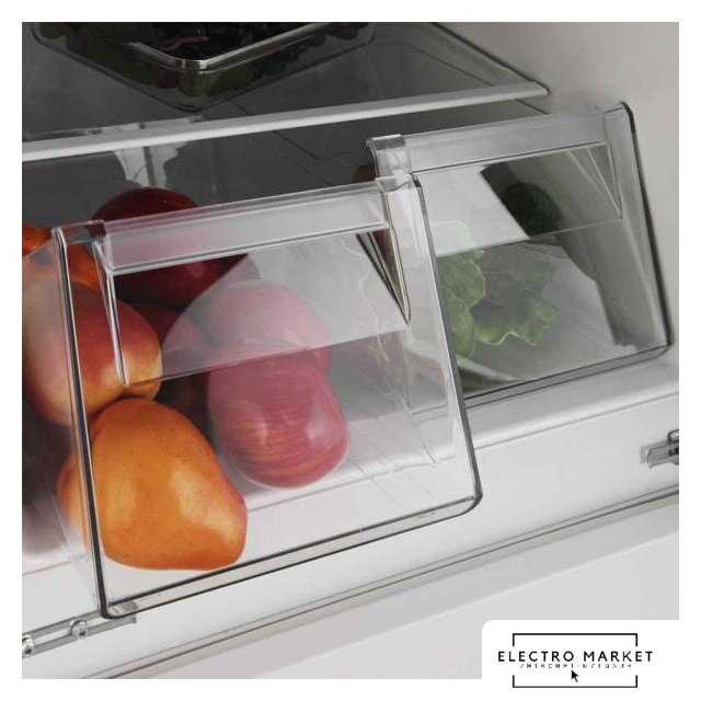 встраиваемый, скользящие направляющие, полный No Frost, электронное управление, класс A+, полезный объём: 237 л (170 + 67 л), инверторный компрессор, зона свежести, перенавешиваемые двери, лоток для яиц, 54x55x176.9 см, белый