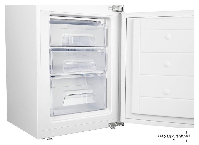 встраиваемый, без No Frost, электронное управление, перенавешиваемые двери, лоток для яиц, 59.5x54.5x81.8 см, белый