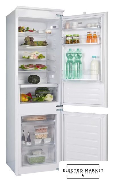 встраиваемый, жесткое, No Frost (морозильная камера), электронное управление, класс A++, полезный объём: 255 л (188 + 67 л), перенавешиваемые двери, лоток для яиц, 55.8x54.5x177.2 см, белый