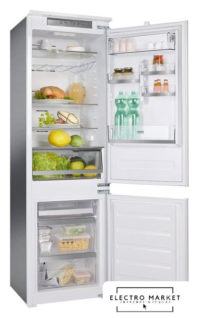 встраиваемый, жесткое, No Frost (морозильная камера), электронное управление, класс A++, полезный объём: 272 л (209 + 63 л), перенавешиваемые двери, лоток для яиц, 55.8x54.5x177.2 см, белый