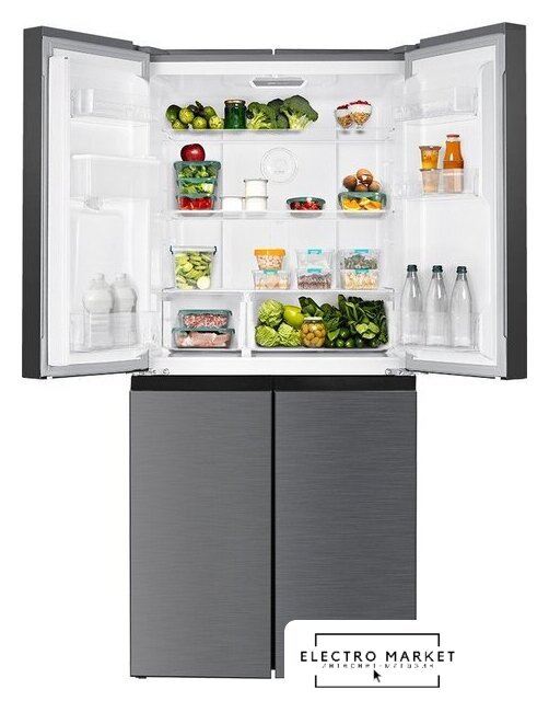 отдельностоящий, полный No Frost, электронное управление, класс A+, полезный объём: 510 л (366 + 132 л), инверторный компрессор, зона свежести, диспенсер, лоток для яиц, 85.5x72.7x183.5 см, графит