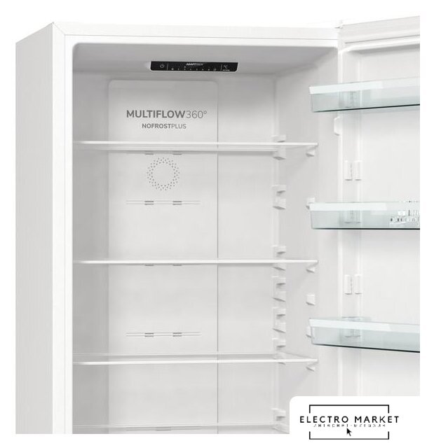 отдельностоящий, полный No Frost, электронное управление, класс A+, полезный объём: 305 л (211 + 94 л), зона свежести, перенавешиваемые двери, автодоводчик дверей, складная полка, полка для вина, лоток для яиц, 59.5x66x186.8 см, белый