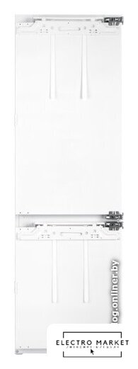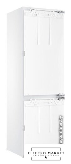встраиваемый, полный No Frost, электронное управление, класс A++, полезный объём: 355 л (280 + 75 л), зона свежести, перенавешиваемые двери, полка для вина, лоток для яиц, 69x55x194 см, белый