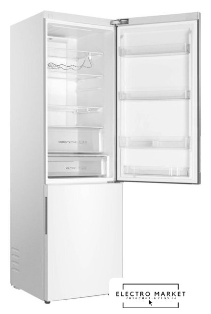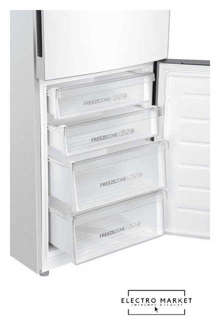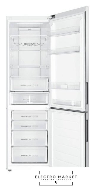 отдельностоящий, полный No Frost, электронное управление, класс A++, полезный объём: 384 л (277 + 107 л), инверторный компрессор, зона свежести, перенавешиваемые двери, складная полка, полка для вина, лоток для яиц, 59.5x68.2x203 см, серебристый