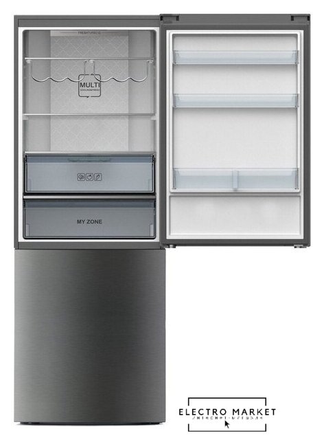 отдельностоящий, полный No Frost, электронное управление, класс A++, полезный объём: 512 л (364 + 148 л), инверторный компрессор, зона свежести, нулевой зазор, подсветка корпуса, автодоводчик дверей, подставка-лоток для бутылок, лоток для яиц, 91x69x190 см, черный/черный металлик