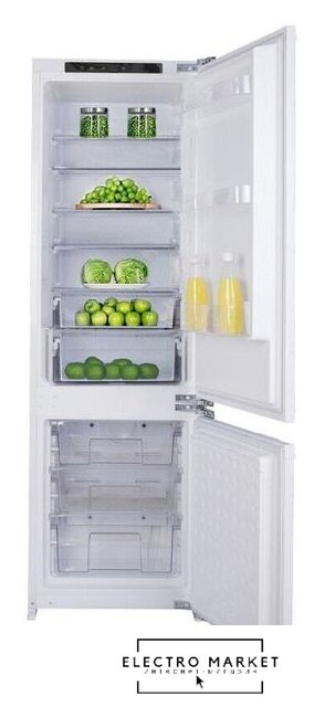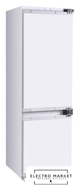 встраиваемый, без No Frost, электронное управление, класс A+, полезный объём: 272 л (195 + 72 л), перенавешиваемые двери, лоток для яиц, 54x54.9x177.9 см, белый