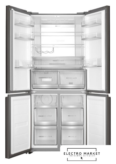 отдельностоящий, полный No Frost, электронное управление, класс A++, полезный объём: 508 л (351 + 157 л), инверторный компрессор, зона свежести, лоток для яиц, 83x67.5x190 см, нержавеющая сталь