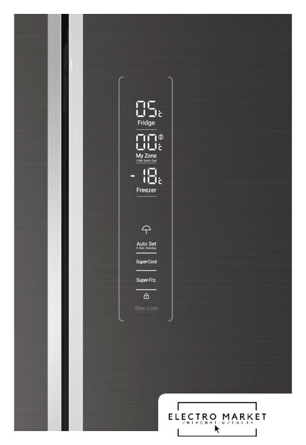 отдельностоящий, полный No Frost, сенсорное управление, полезный объём: 562 л (371 + 191 л), инверторный компрессор, полка для вина, 91x68.9x178.6 см, черный