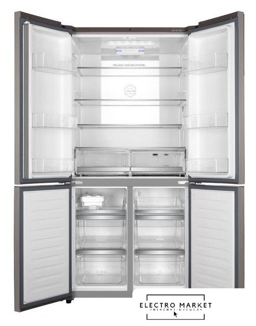 отдельностоящий, No Frost (морозильная камера), электронное управление, полезный объём: 361 л (258 + 103 л), инверторный компрессор, зона свежести, перенавешиваемые двери, складная полка, лоток для яиц, отделка: защита от отпечатков, 59.7x67.5x201.5 см, темная сталь