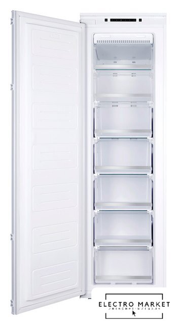 встраиваемый, плоские шарниры, полный No Frost, электронное управление, класс A+, полезный объём: 255 л (188 + 67 л), перенавешиваемые двери, лоток для яиц, 54.1x54.5x177.2 см, белый
