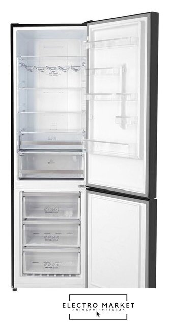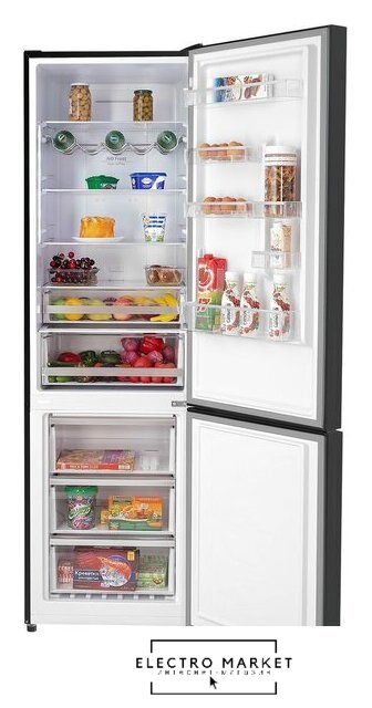 отдельностоящий, полный No Frost, сенсорное управление, класс A+, полезный объём: 540 л (354 + 186 л), инверторный компрессор, зона свежести, лоток для яиц, отделка: стекло, 85x68x191 см, черный