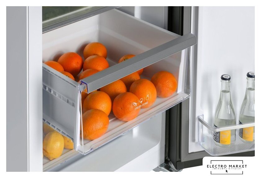 отдельностоящий, без No Frost, сенсорное управление, полезный объём: 547 л (324 + 223 л), зона свежести, 85.5x66.6x189.5 см, серый