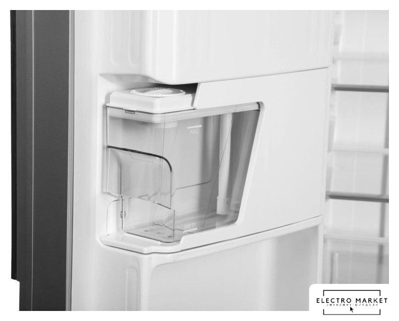 отдельностоящий, полный No Frost, сенсорное управление, полезный объём: 513 л (344 + 169 л), диспенсер, лоток для яиц, 91x67x177.5 см, черный