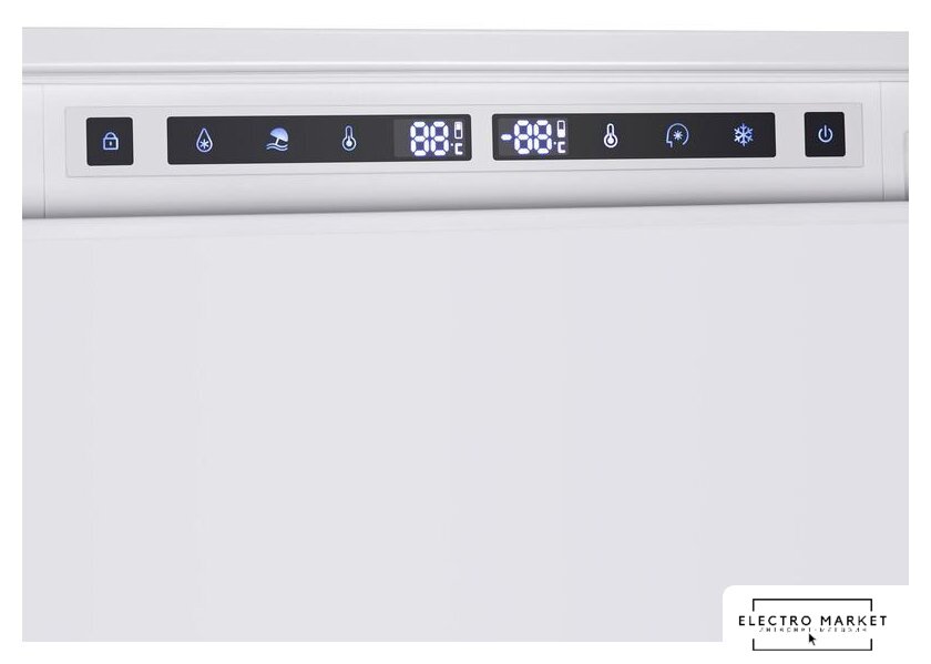 встраиваемый, скользящие направляющие, полный No Frost, сенсорное управление, класс A++, полезный объём: 241 л (182 + 59 л), перенавешиваемые двери, лоток для яиц, 54x54.5x178.5 см, белый