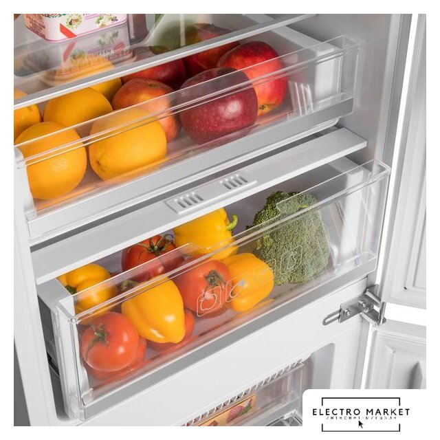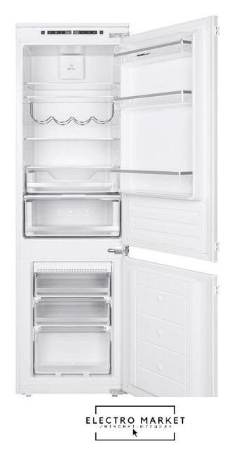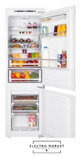 встраиваемый, No Frost (морозильная камера), электронное управление, класс A+, полезный объём: 240 л (183 + 57 л), перенавешиваемые двери, лоток для яиц, 54x54x178.1 см, белый