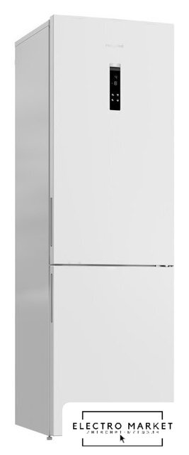 отдельностоящий, полный No Frost, электронное управление, класс A+, полезный объём: 384 л (277 + 107 л), инверторный компрессор, перенавешиваемые двери, лоток для яиц, 59.5x68.2x203 см, белый